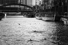 神田川は、常に私の生活圏 に流れている。中流域に住んでいた少年の頃は、コンクリートの壁ではなく、草の生えた土手であり、川に降りてはザリガニ取りに夢中になった。しかし、大雨が降ればすぐに溢れかえる川だった。高校時代は上流域が遊び場、現在は下流域が仕事のエリアである。そんな神田川の下流域を中心に撮影してみた。